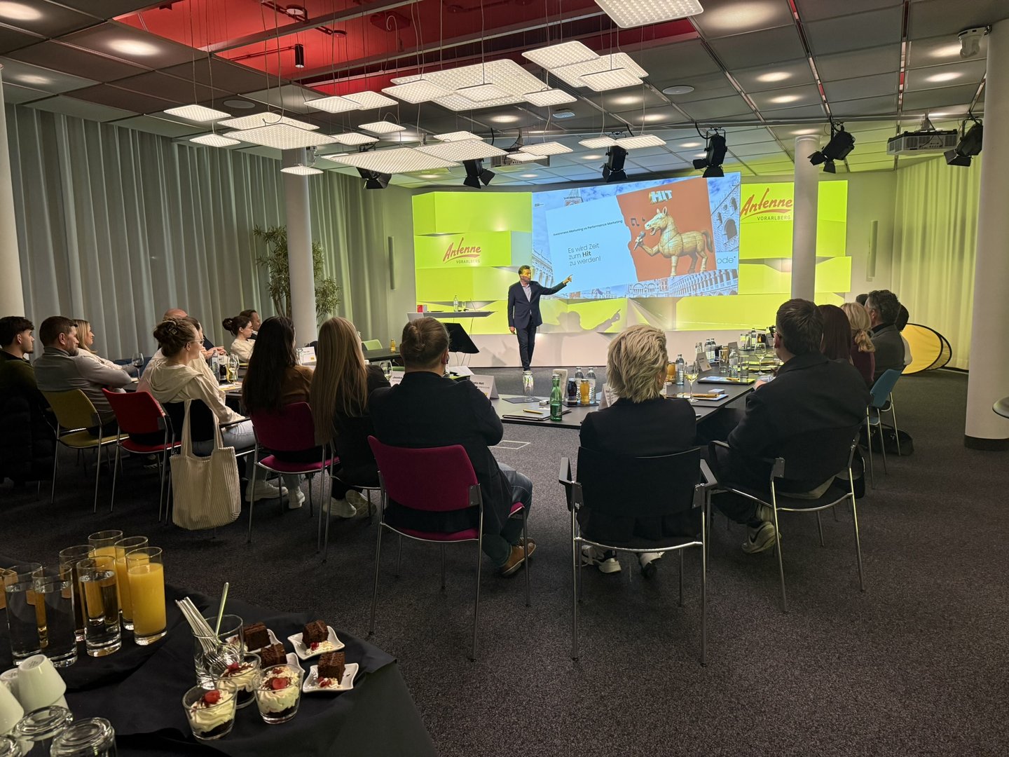 Wieder durften wir zur Vorarlberger Wirtschaft sprechen und die Stärken von Marke und Audio Branding demonstrieren. Eine neue Rekordanzahl an Gästen besuchten uns an 3 Tagen und das Feedback war enorm. Wenn schwierige Zeiten und viel Irritationen in den Märkten aufeinander prallen, Social Media oft als letzter Ausweg gesehen wird, dann braucht es eine klare und verständliche Strategie. Da spielt Audio eine entscheidende Rolle als Ort des Vertrauens, der Emotionalität und der Stetigkeit. Die Antenne ist hier natürlich als absoluter Marktführer die Adresse Nr.1 und zeigte sich auch wieder als perfekter Gastgeber. Vielen Dank an den GF, Mario Mally und sein fantastisches Team. Das Thema für 2027 ist gesetzt und wir freuen uns auf ein Wiedersehen mit dem wunderbaren Ländle mit ebenso vielen Gästen aus Deutschland und der Schweiz. Auf bald und Servus – wir hören uns 😉
